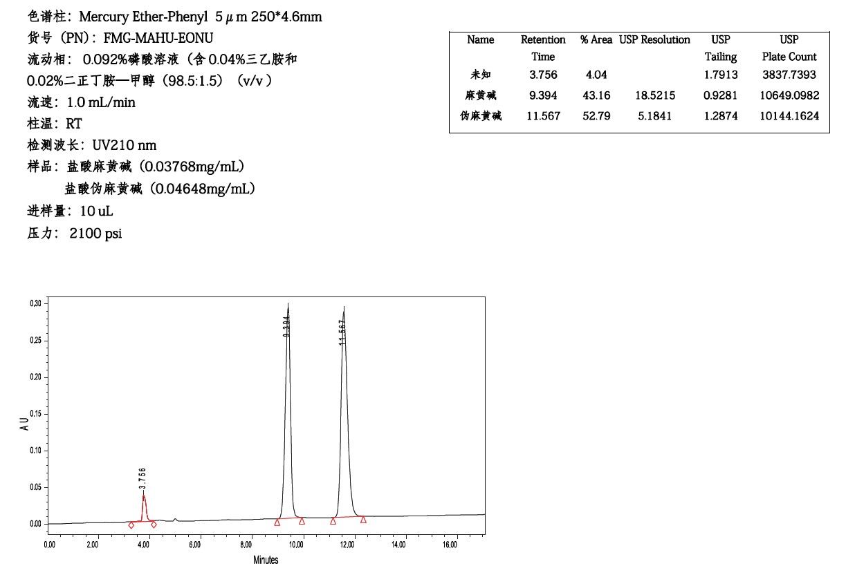 (2)Mercury Ether-Phenyl 麻黃分析柱