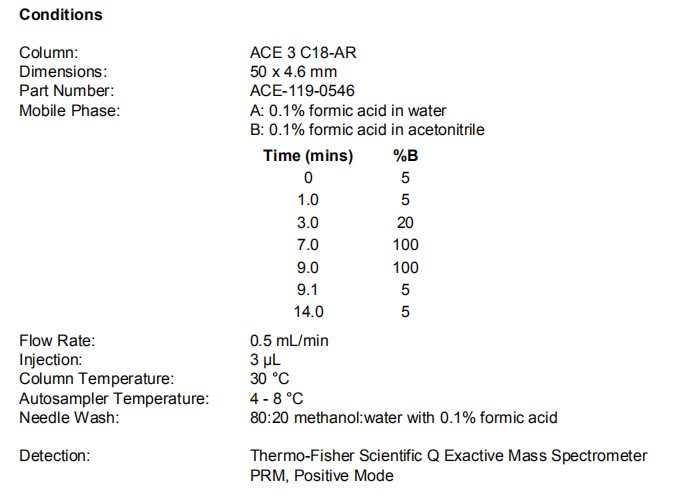 流動(dòng)相 A 0.1%甲酸水 B 0.1%甲酸乙腈
