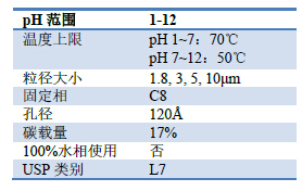 | Titank C8 pH=1-12,高至100%水相流動相穩(wěn)定 | ||