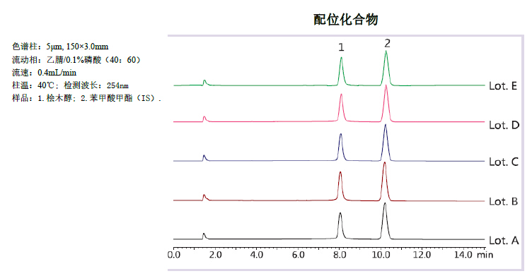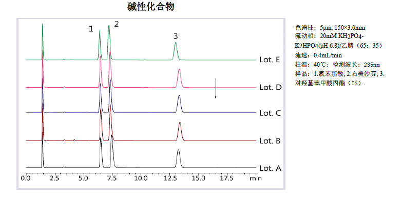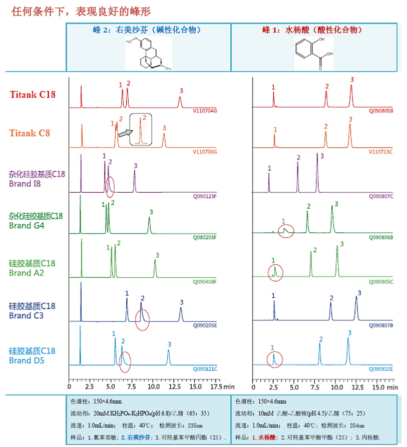 上圖顯示,對易于引起吸附、拖尾及易產(chǎn)生再現(xiàn)性問題的堿性化合物和配位化合物,Titank 系列能獲得穩(wěn)定的重現(xiàn)性。