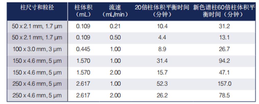 ACE 100 ?多孔柱達(dá)到20和60倍柱體積平衡所需的時間表