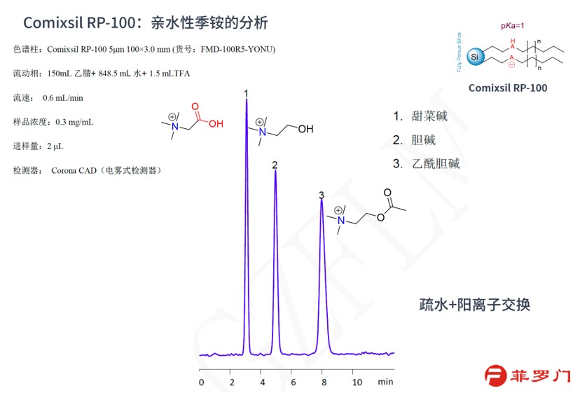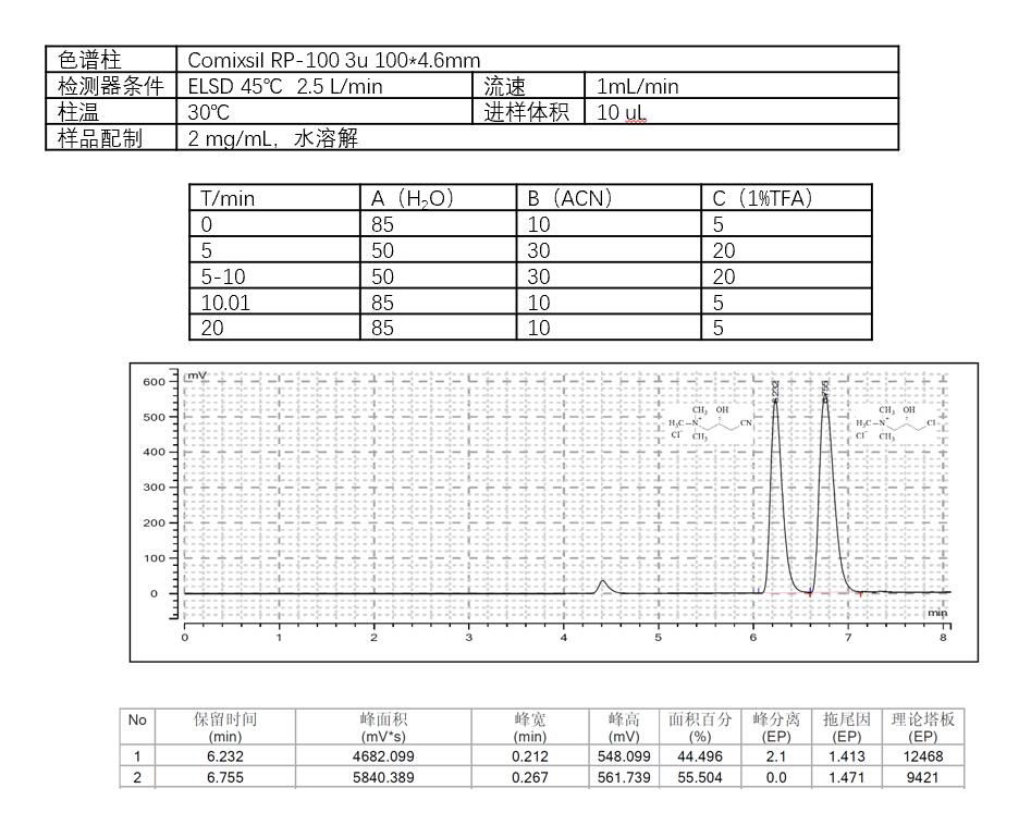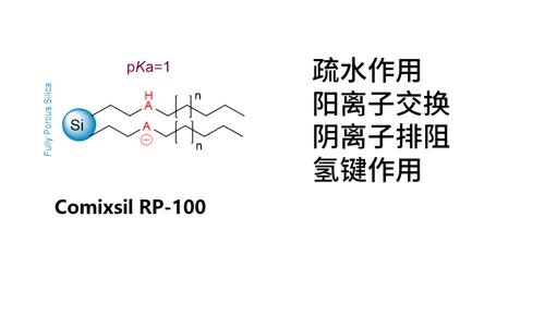 使用Comixsil RP-100色譜柱,通過(guò)陽(yáng)離子離子交換和疏水作用保留和分離這兩個(gè)化合物。