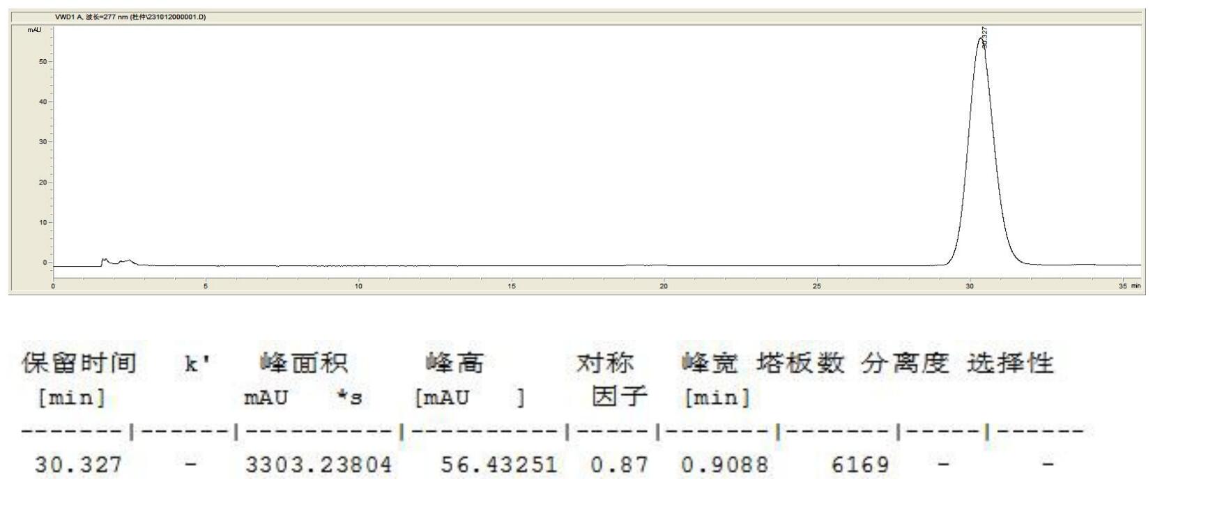 檢測器:UV 277nm