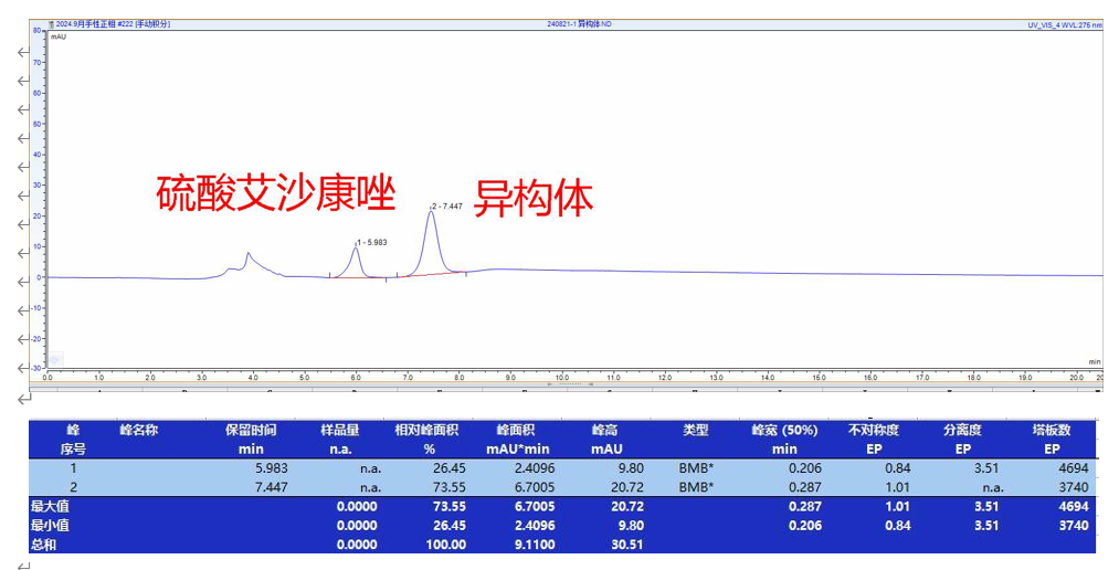 使用菲羅門手性柱進行硫酸艾沙康唑及其對映異構(gòu)體的手性拆分時,通常包括以下步驟: