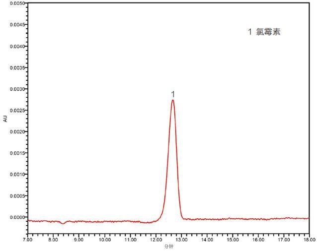 圖 1 添加水平為 0.5mg/kg 牛奶基質(zhì)中氯霉素檢測色譜圖