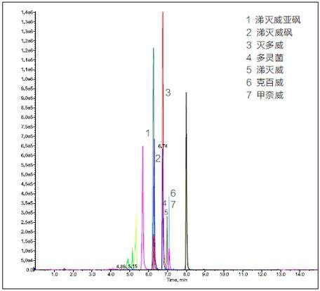 氨基甲酸酯類農(nóng)藥各組分名稱、保留時間及母離子和子離子檢測離子對: