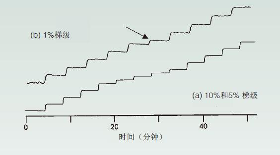 以10%為增量運行一系列梯級(梯級實驗)(10%、20%、30%……90%、100%B)。
