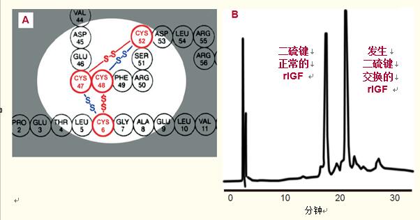 圖43. 對二硫鍵合正常和發(fā)生二硫鍵交換的類胰島素生長因子的分離。